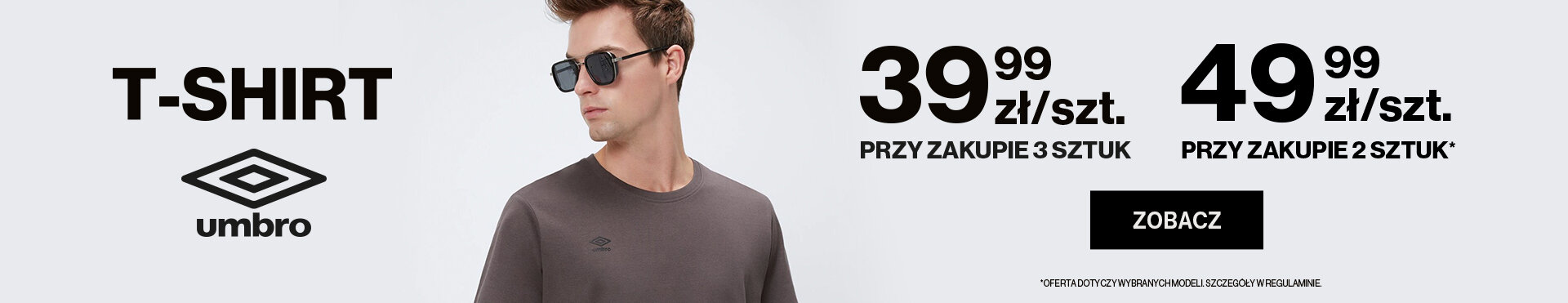 *Promocja dotyczy wybranych modeli T-shirtów marki UMBRO i nie łączy się z innymi akcjami promocyjnymi. Jeśli chcesz skorzystać z dwóch promocji, złóż osobne zamówienia. Rabat wynikający z akcji naliczy się automatycznie w koszyku po dodaniu do niego produktów objętych promocją. Szczegóły w regulaminie.